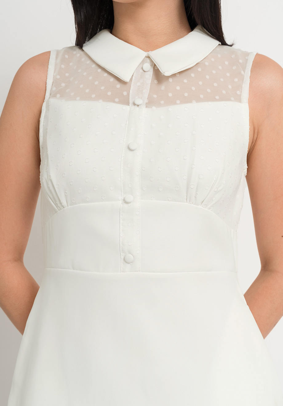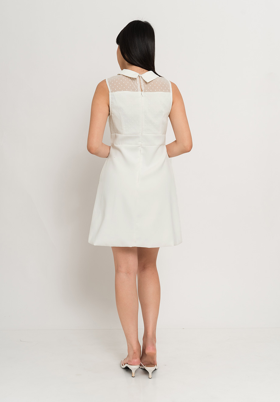 - Concealed back zipper & button for closure